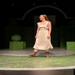 Amelia as Rosalind during a dress rehearsal of Shakespeare’s As You Like It
